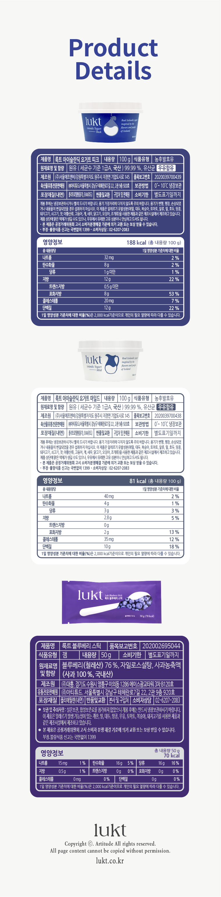 요거트 마일드 : 원유 99.96%, 복합유산균 0.04%