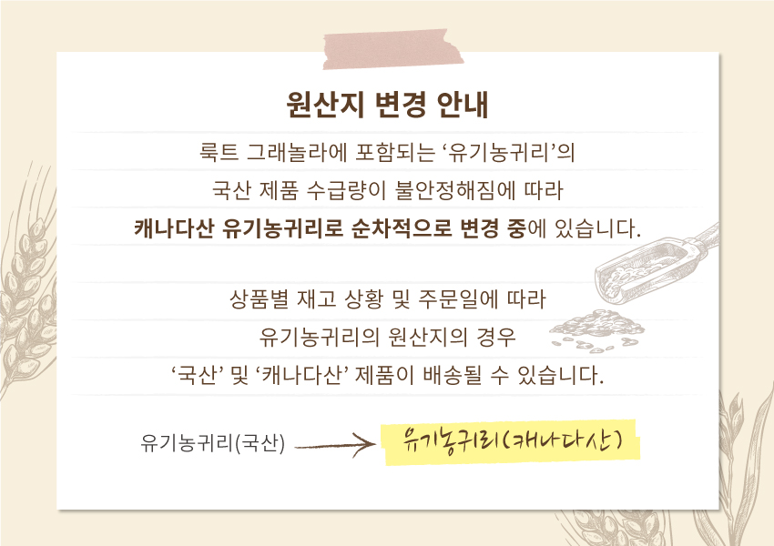 유기농귀리 37.6%, 프락토올리고당, 코코넛오일, 아몬드, 볶음코코넛칩, 피칸, 시나몬, 옥수수분말, 소금