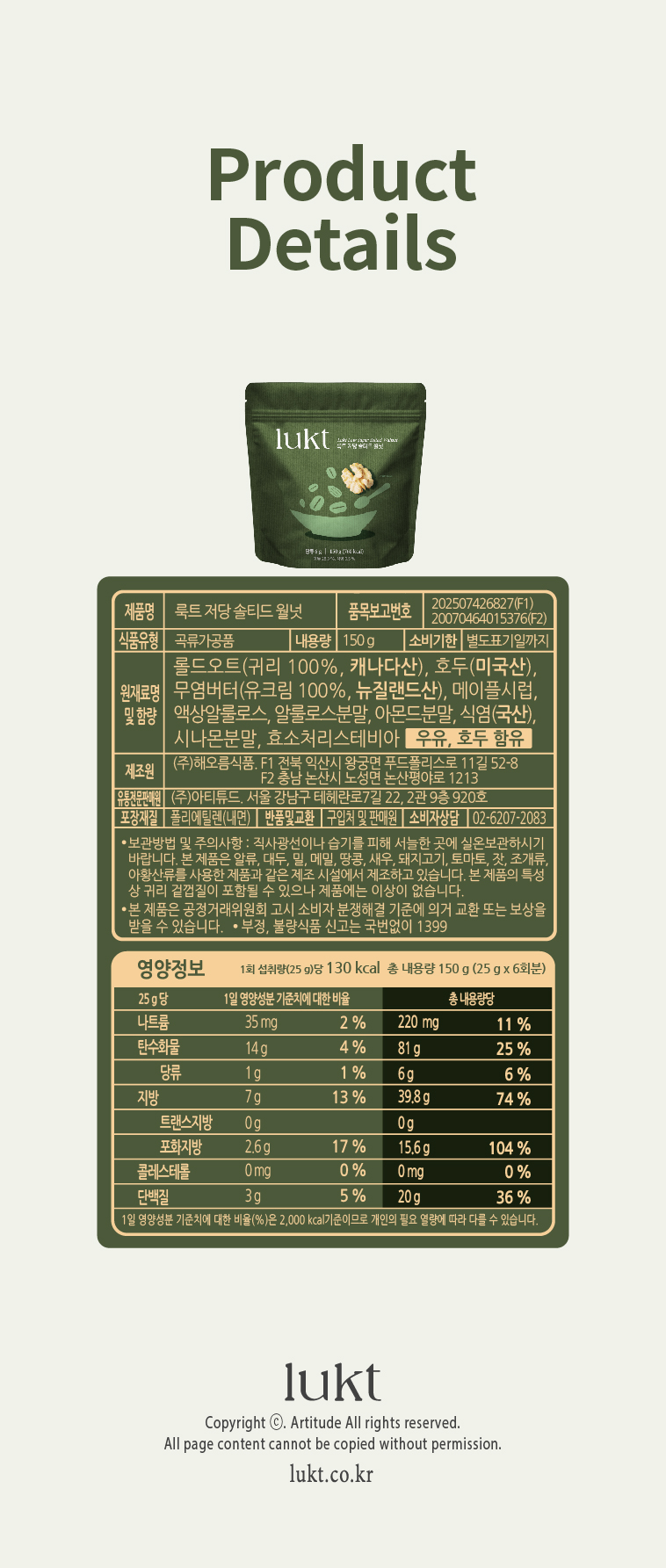 [대용량] 저당 솔티드 월넛 그래놀라 150g