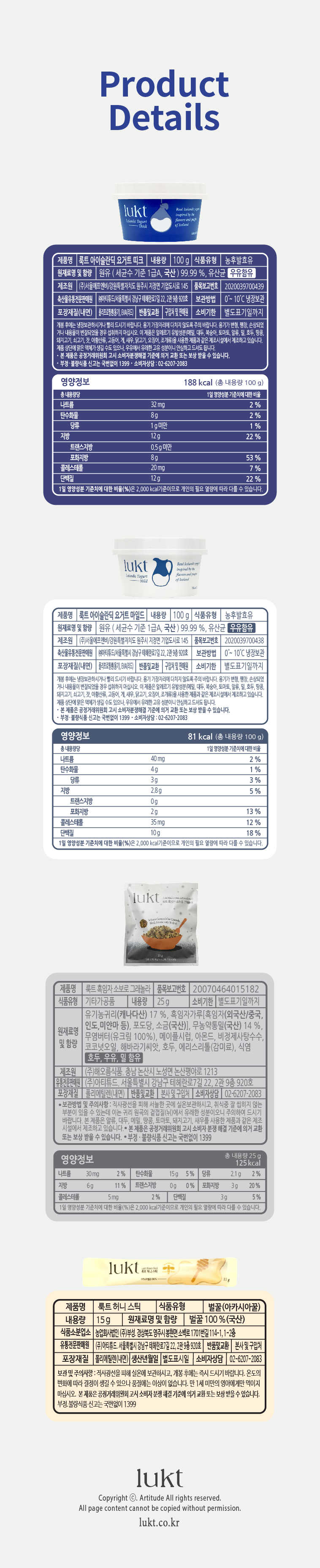 요거트 띠크 : 열량 190kcal, 나트륨 32mg, 탄수화물 8.5g, 당류 1g미만, 지방 12g, 트랜스지방 0.5g, 포화지방 8g, 콜레스테롤 20mg, 단백질 12g
